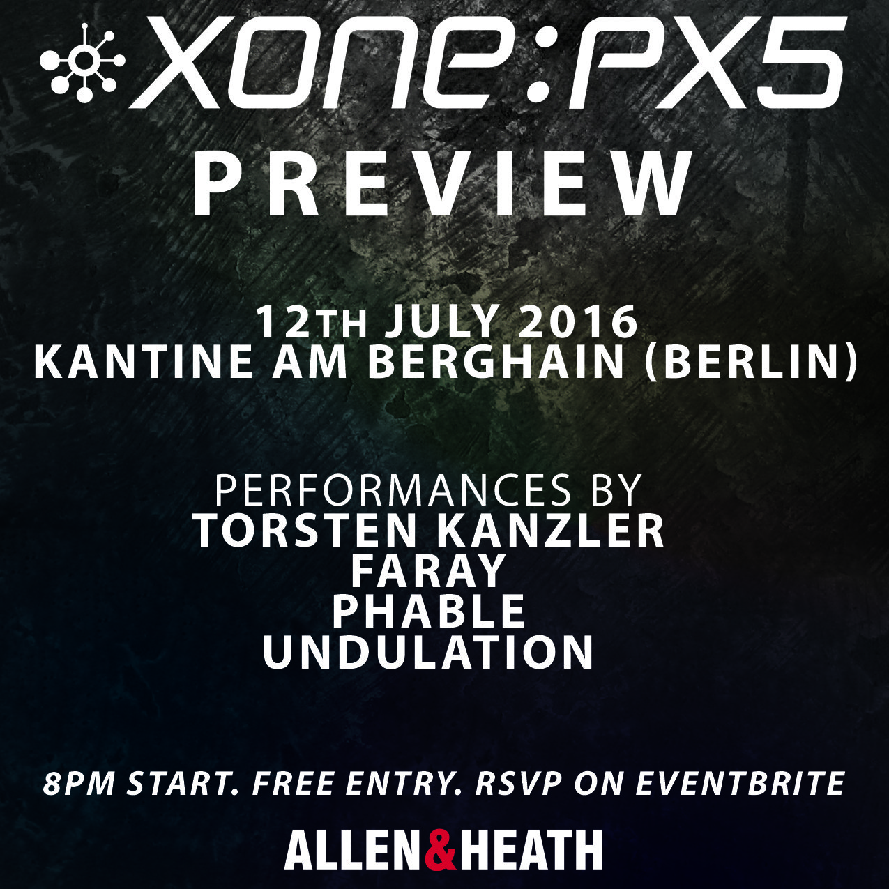 Bei Allen & Heath scheint sich ein neues DJ-Gerät anzukündigen. Vor kurzem erreichte uns eine relativ inhaltlose Pressemitteilung zum neuen Allen & Heath Xone:PX5. Was sich genau hinter diesem Namen verbirgt wurde uns leider nicht mitgeteilt. Lediglich dass das Geheimnis am 12. Juli 2016 auf einer Veranstaltung in der Kantine am Berghain in Berlin gelüftet werden wird ist darin zu entnehmen.
