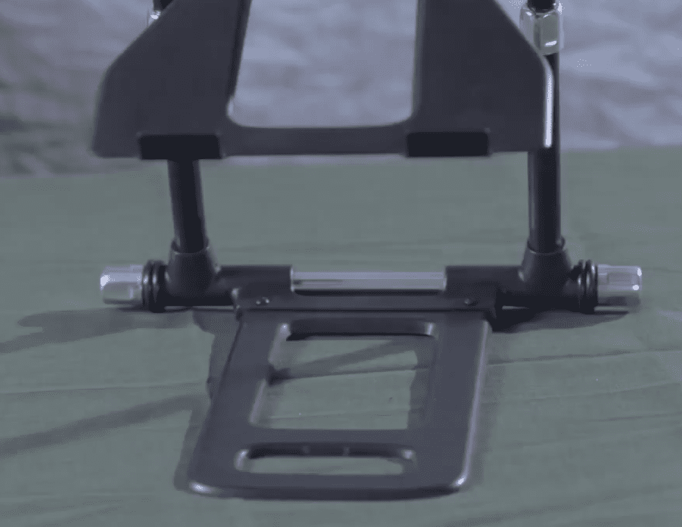 Im Vergleich zu den bisherigen Cranestands scheinen beim Model Elite die Beine höhenverstellbar zu sein. Die Arretierung erfolgt hier durch zwei Muttern.