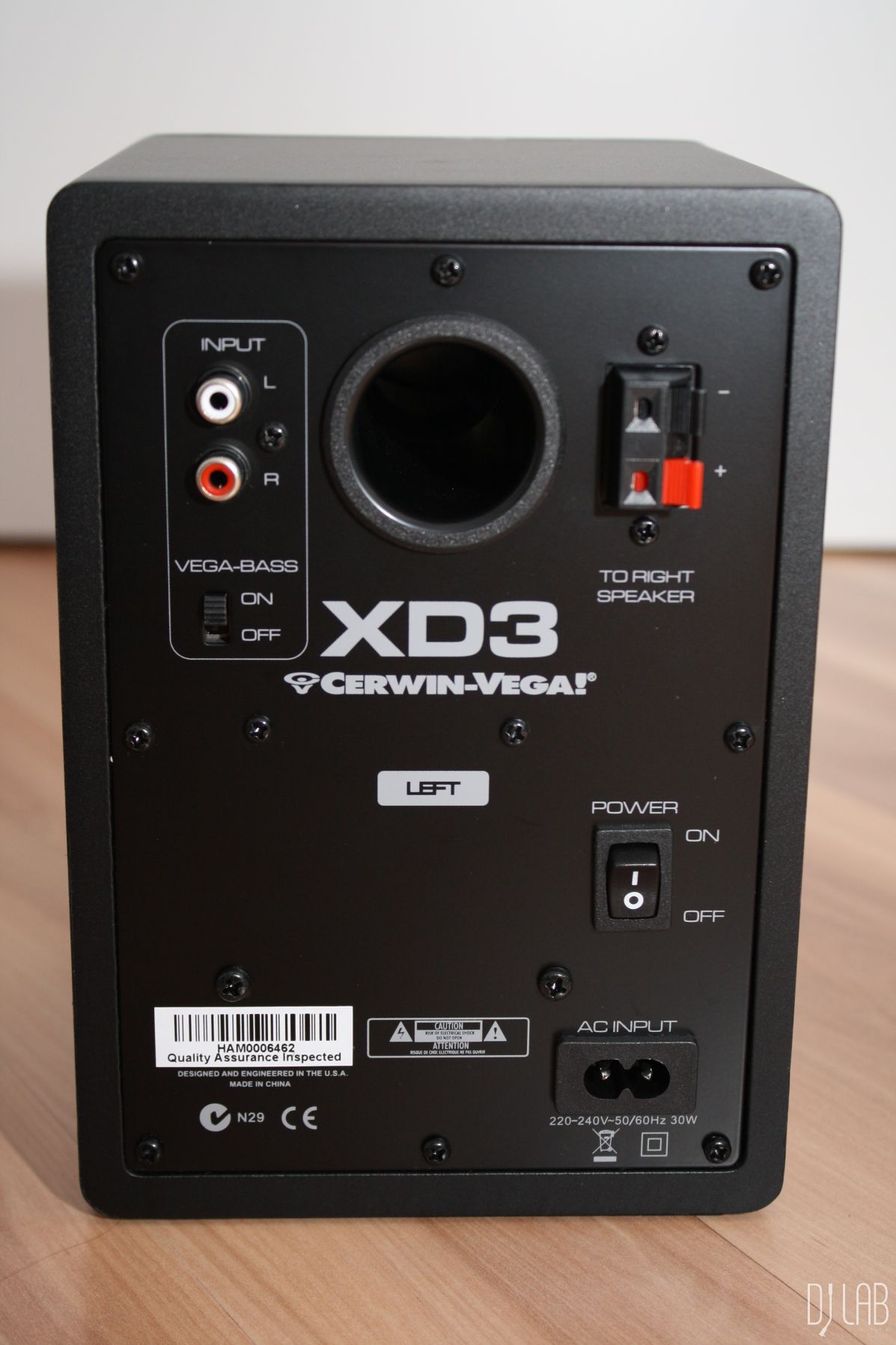Die XD-Destoplautsprecher von Cerwin-Vega! setzen sich aus den aktiven 2-Wege-Modellen XD3, XD4 und XD5 zusammen. Alle drei werden als Paar verkauft und können durch den Subwoofer XD8S ergänzt werden. Als gemeinsame Ausstattungsmerkmale sind alle drei Tischboxen auf der Vorderseite mit einem Lautstärkedrehregler, einem AUX-Eingang in Form einer Miniklinkenbuchse und einem Kopfhörerausgang ausgestattet. Damit eine paarweise Nutzung möglich ist, werden die Modelle XD4 und XD5 durch ein spezielles Kabel miteinander verbunden. Bei XD3 übernimmt diese Funktion ein gewöhnliches zweiadriges Lautsprecherkabel. Die Anschlussbuchsen, Netzschalter und Netzkabel findet ihr bei allen drei XD-Modellen an der jeweils linken Box.