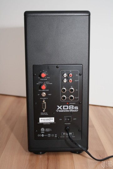 Für eine zusätzliche Leistung im Bassbereich gibt es den Subwoofer XD8S, den ihr unter oder neben den Tisch stellen könnt. Der XD8S misst 46 x 24 x 29 cm und somit auch eher ein kleindimensionierter Subwoofer. Sein Treiber befindet sich auf der linken Gehäuseseite und hat einen Durchmesser von 8 Zoll. Der Frequenzgang liegt bei 35 bis 225 Hz und der Verstärker leistet 80 Watt. Auf der Vorderseite gibt es eine große Öffnung für die Bassreflexröhre und sämtliche Anschlüsse und den Netzschalter findet ihr auf der Rückseite. Zusätzlich zu den Anschlüssen ist der Sub mit einer Frequenzweiche ausgestattet, mit der ihr eure Lautsprecher aufeinander abstimmen könnt und mit einem Schalter zur Umkehrung der Signalpolarität.