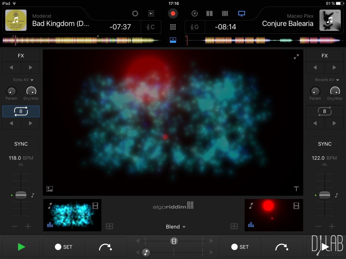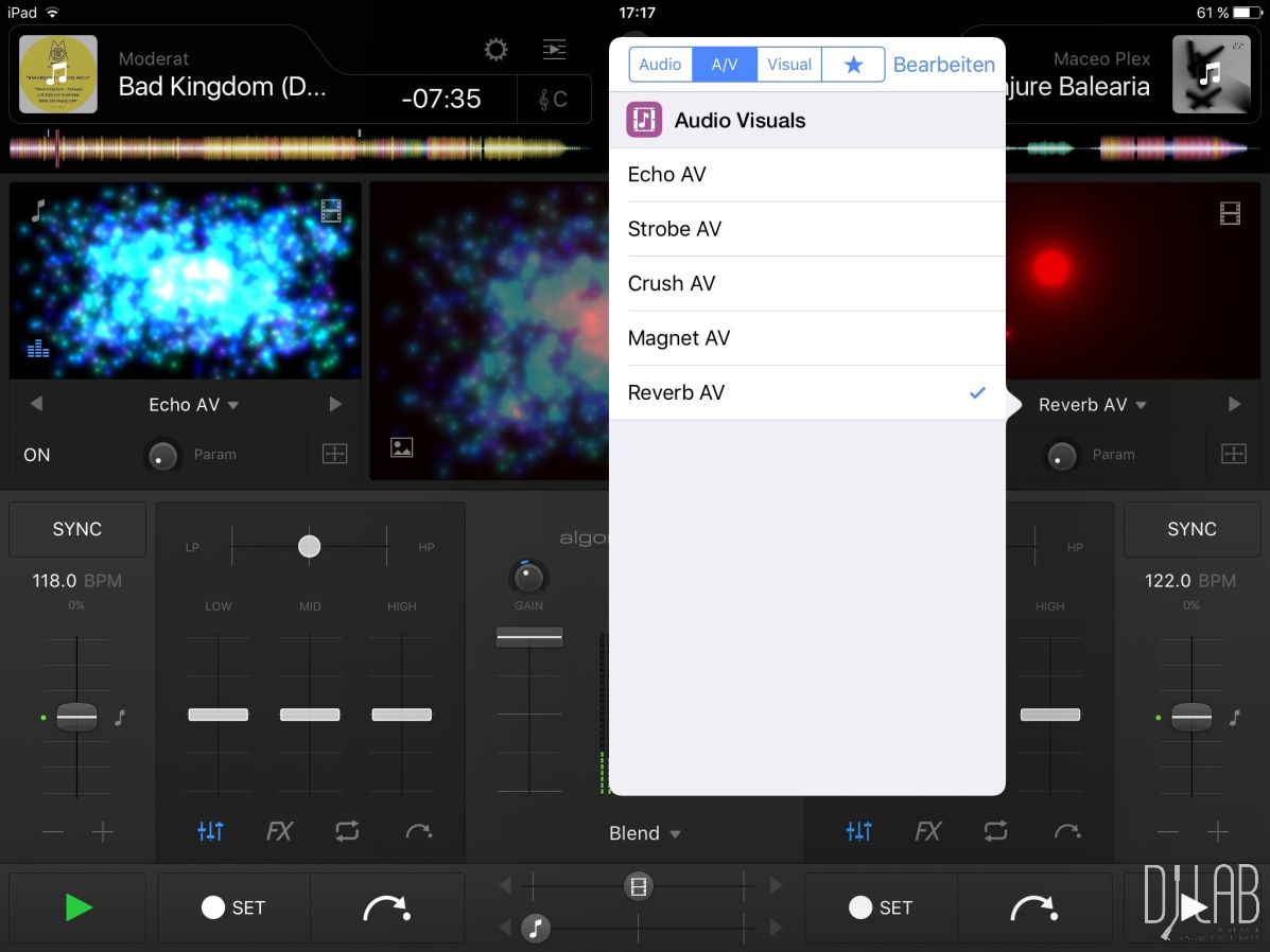 Zugegebenermaßen bin ich kein ausgewiesener VJing-Experte und habe leider keine großen Vergleichsmöglichkeiten zu anderen VJing Apps oder Computerprogrammen. Ich behaupte aber mal, dass sich die gebotenen Möglichkeiten in der djay PRO-App sehen lassen können und qualitativ recht ordentlich sind. Ihr könnt Videos mit Effekten versehen, loopen und scratchen und Texte oder Bilder darüber legen.