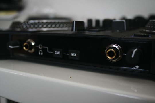 Zur Erweiterung des Setups gibt es einen Aux-Eingang der als Miniklinke ausgeführt ist und auf der Vorderseite findet ihr einen Mikrofoneingang mit einem Pegelregler. Zum Vorhören von Songs gibt es zwei Kopfhörerausgänge mit 6,3-Milimeter- und 3,5-Milimeter-Buchsen.