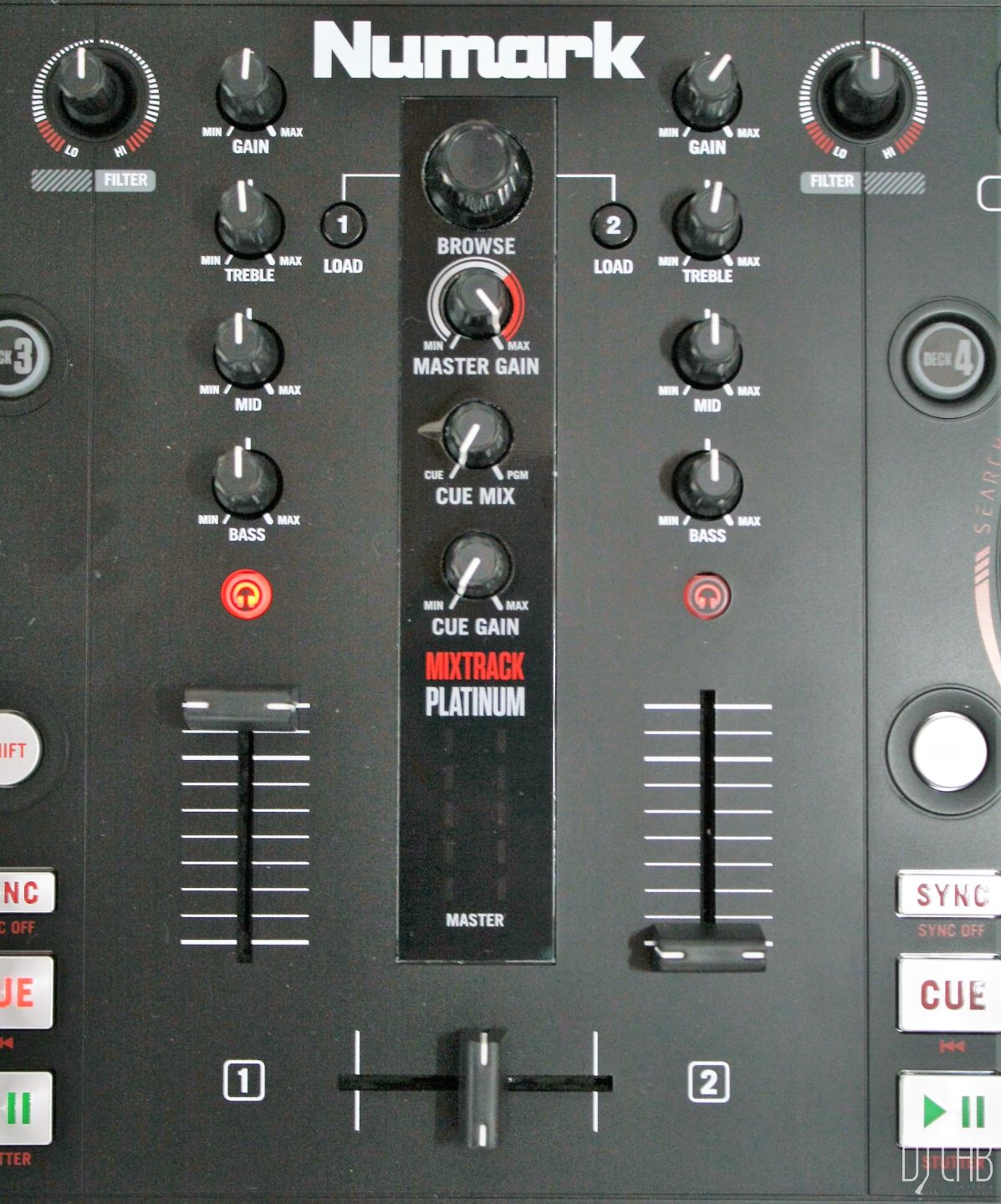 Der Mixtrack Platinum ist, wie seine Vorgänger, als Zweideck-Controller ausgeführt und hat ein Gehäuse, das 548 x 231 x 28 Millimeter misst. Die Decks verfügen über illuminierte Transporttasten und Jogwheels mit 11 Zentimetern Durchmesser. Numark hat dem Controller zwei Displays spendiert, die sich innerhalb der Jogwheels befinden. In beiden Decks gibt es zudem je gummierte 8 Pads mit unterschiedlichen Funktionsbelegungen. Das Tempo der Songs ist mit Pitchfadern steuerbar, die einen zehn Zentimeter langen Regelweg haben. Zur schnellen Navigation innnerhalb der Songs und zur Kontrolle von Effektparametern, ist der Mixtrack Platinum mit Touchstrips ausgestattet.
