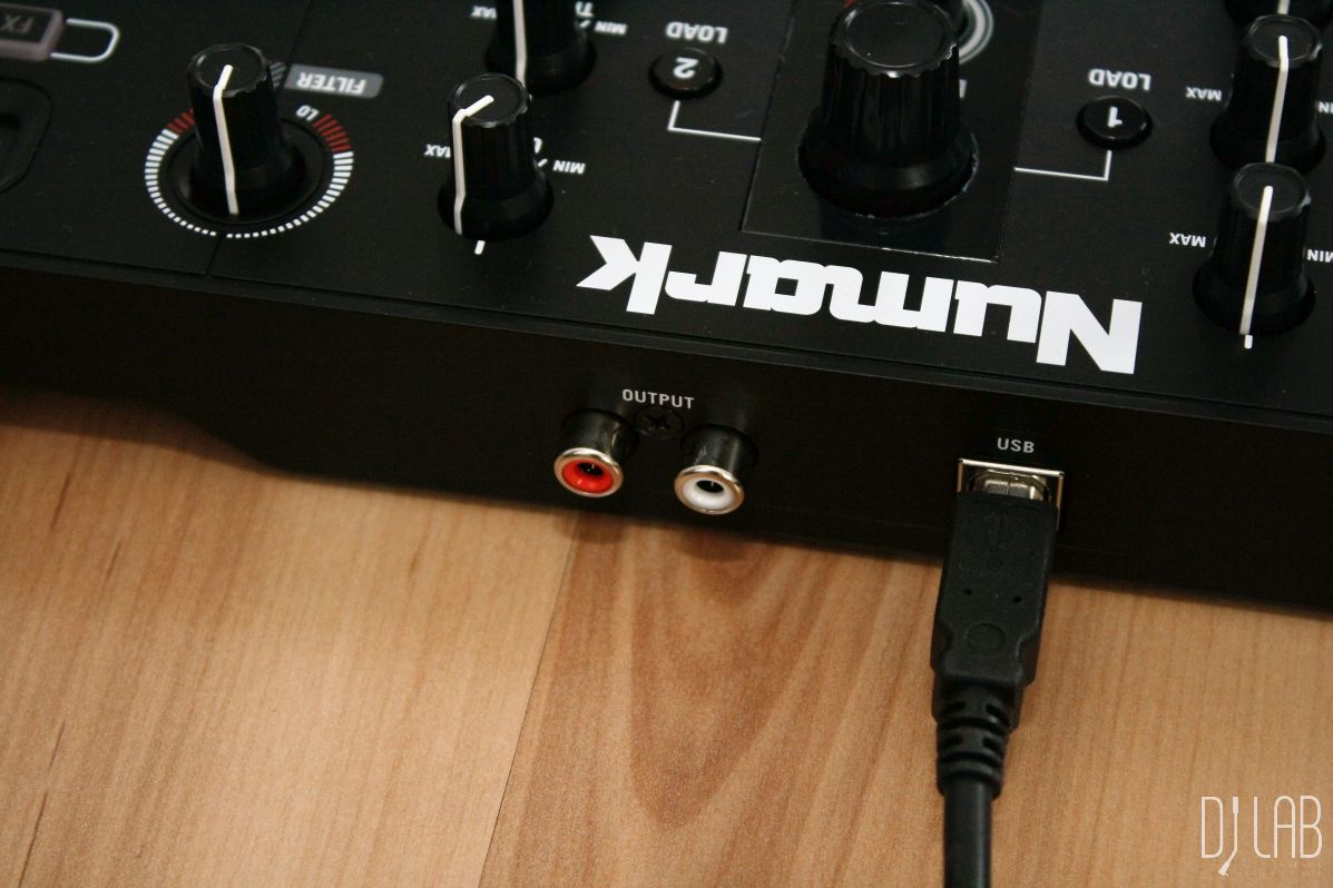 Im Inneren des Mixtrack Platinum befindet sich ein Audiointerface mit vier Ausgangskanälen, das mit 24 Bit und 44,1 Kilohertz arbeitet. Zur Ausgabe des Musiksignals gibt es ein Cinchpaar auf der Geräterückseite über das ihr den Controller an einen Verstärker oder einen Submixer anschließen könnt.