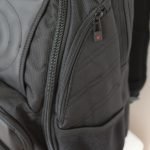 Würde auf der Frontseite kein Ortofon-Logo prangen, man würde nicht vermuten, dass man es mit einem DJ-Rucksack zu tun hat. Das Format ist ebenso angenehm unauffällig, wie das geringe Eigengewicht der Tasche. Die Oberfläche ist, wie uns vom Hersteller bestätigt wurde, aus wasserabweisendem Material. Alle Reißverschlüsse laufen sauber und die verstärkten Zipper sind ebenso griffig, wie stabil. Aber genug der Vorrede, schauen wir uns mal das Innenleben an!