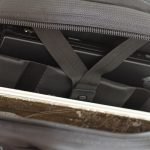 Einen Handgriff bietet das Ortofon DJ Bag selbstverständlich auch. Für Stabilität sorgt hier nicht nur die massive Verarbeitung, sondern auch die vernieteten Gurte. Insgesamt machen auch alle weiteren Nähte des Rucksacks einen absolut soliden Eindruck und lassen keine Zweifel an der Haltbarkeit aufkommen. Kritik lässt sich einzig an der recht dünnen Polsterung des Mixerfachs üben.