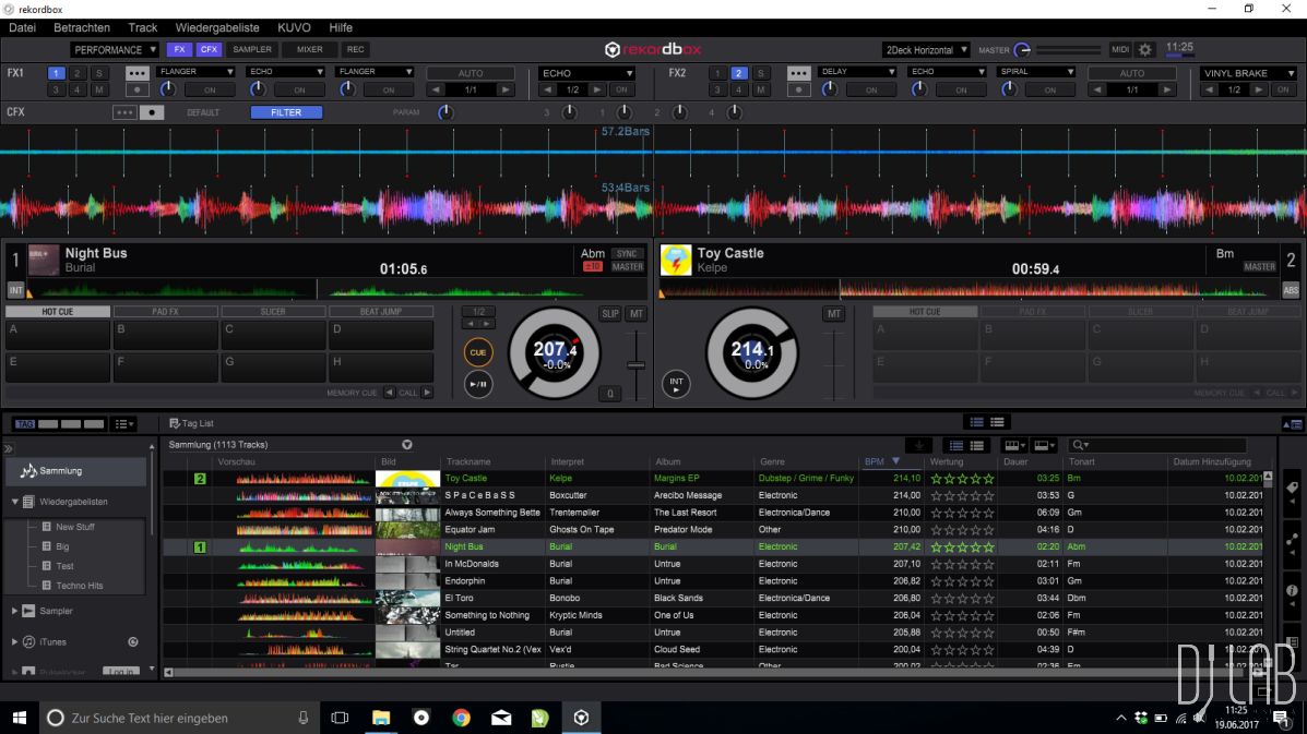 Ihr könnt Songs verwalten, Hotcue-Punkte setzen, zahlreiche Effekte und einen Sampler nutzen. Die interne Soundkarte des Mixers, die in diesem Fall zum Einsatz kommt lässt sich mit einem geeigneten Rechner mit niedrigen Latenz-Einstellungen betreiben und funktionierte in meinem Test mit einem Windows-10-PC sehr stabil. Installiert man einen zusätzlichen (ASIO-) Treiber, kann die Soundkarte auch mit anderen Programmen wie Traktor Pro oder Ableton Live genutzt werden.
