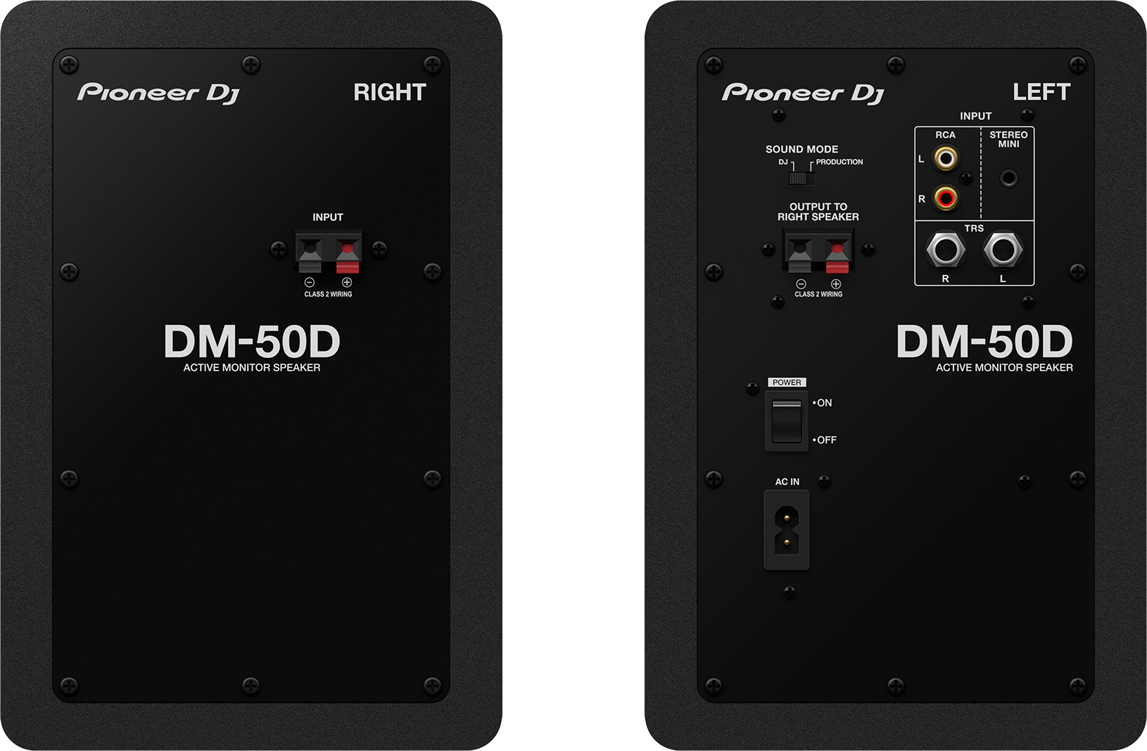 Pioneer DJ hat das DM-50-System mit einem digitalen Class-D-Verstärker ausgestattet, der zweimal 25 Watt bei vier Ohm leistet und zudem mit einem DSP versehen ist. Der DSP nutzt eine Samplingrate von 96 kHz und verfügt über zwei Betriebsmodi, die per Umschalter auf der Rückseite des linken Speakers selektierbar sind. Mit diesem „Sound Mode“-Schalter kann zwischen dem DJ- und Production-Modus umgeschaltet werden.