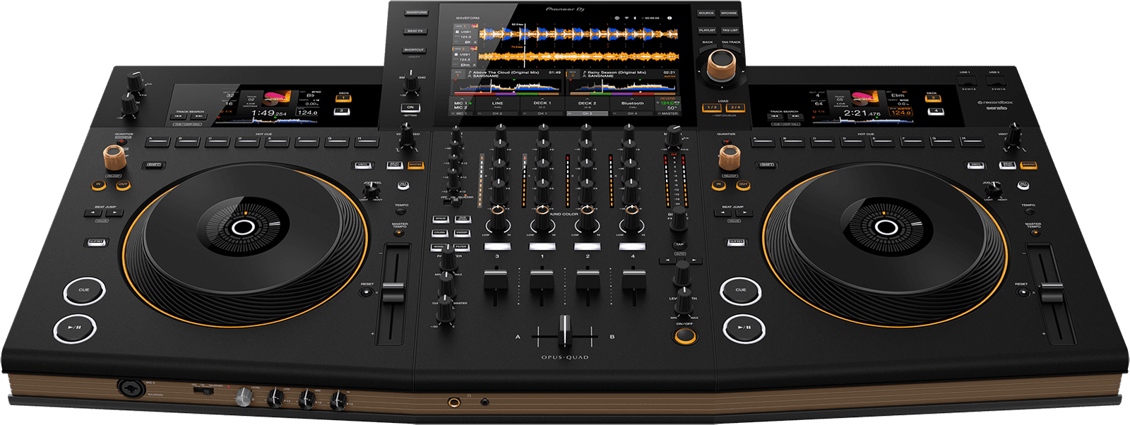 Die DJ-Workstation ist hervorragend verarbeitet und versprüht durch die kupferfarbenen Potis einen sehr hochwertigen Charme. Der Opus Quad ist mit einer internen Software ausgestattet, die einen vollständigen Standalone-Einsatz erlaubt und dient zudem als Hardware-Dongle für Rekordbox und Serato DJ Pro. Das Preisschild des Pioneer-DJ-Geräts weist einen Betrag von 3299 Euro aus.