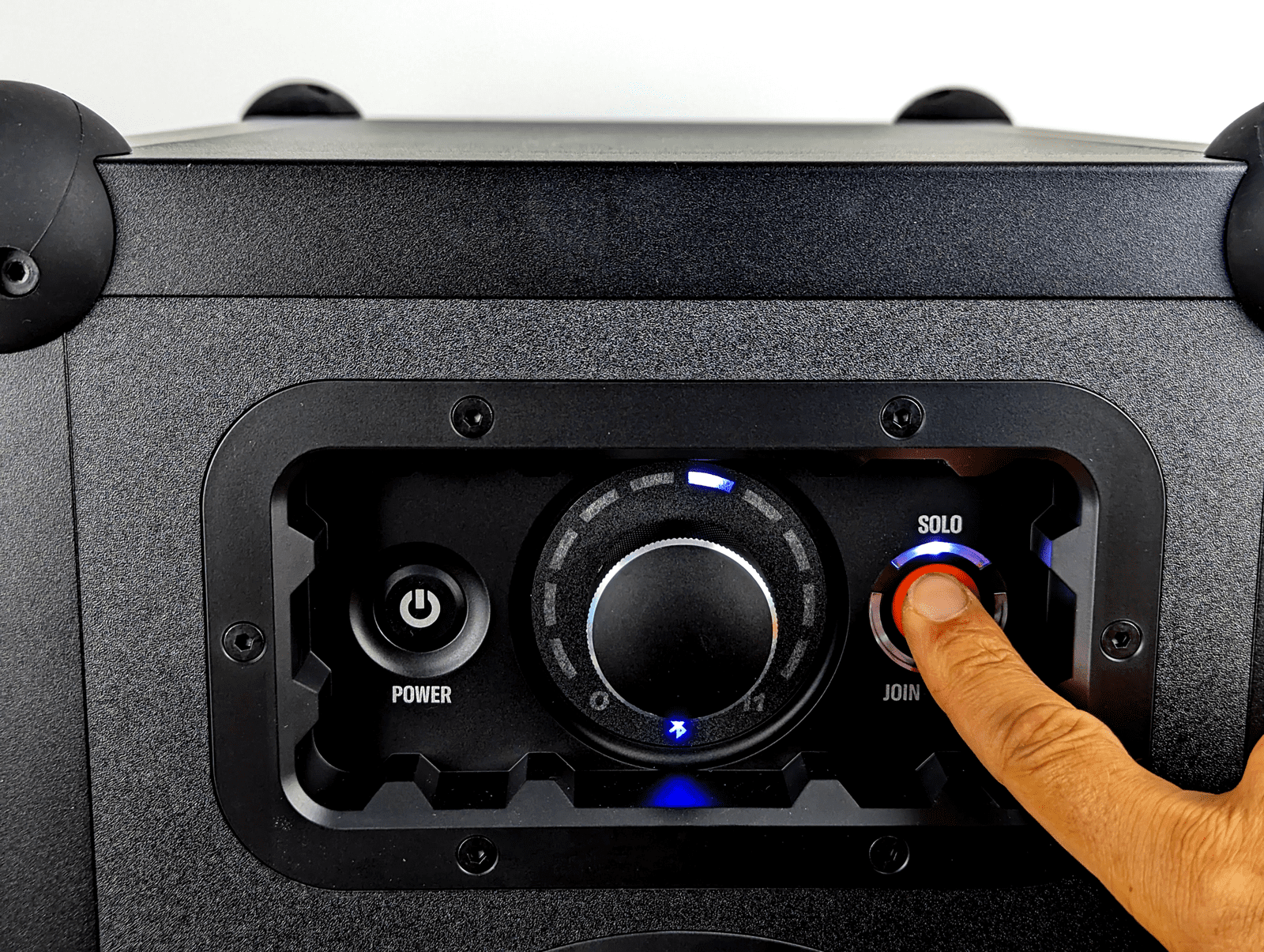 Die SOUNDBOKS 4 ist wie ihre Vorgänger für ausdauernde, laute Beschallungen konzipiert und kann auf verschiedene Weisen genutzt werden. Nach dem Einsetzen des geladenen Akkus und Einschalten wählt man beispielsweise den Modus „Solo“, koppelt sein Smartphone via Bluetooth mit dem Lautsprecher und schon erklingen die ersten Beats. Hat man mehrere SOUNDBOKS zur Verfügung, lassen sich diese durch Auswahl der Modi „Host“ und „Join“ bequem drahtlos kombinieren. Diese TeamUP-Funktion ist mit den SOUNDBOKS der vierten und dritten Generation oder den kleineren SOUNDBOKS GO nutzbar und kann per „Bond“-Taster zusätzlich gegen Fremdkopplungen geschützt werden. Dieses Setup funktionierte in unserem Test problemlos, Abbrüche oder sonstige Störungen sind bei der drahtlosen Kommunikation nicht aufgetreten.