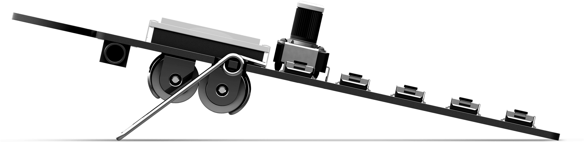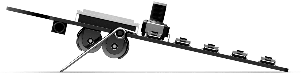 Auch bei der Hardware setzt Teenage Engineering erneut auf das puristische, wenn auch etwas fragil wirkende Design im Hosentaschenformat: Alle Bedienelemente sowie Display und Batterieeinheit sind offen auf der Platine verlötet, weshalb sich ein optionales Silicon Case besonders bei Ausflügen und Touring mit dem Pocket Operator durchaus empfiehlt. Des Weiteren finden sich links- und rechtsseitig 3,5mm-Miniklinkenbuchsen, die als Phones-/Line-out bzw. Sync-Input zum Anschluss anderer Pocket Operator und anderer Groove-Tools wie z. B. der Korg Volca Serie fungieren. Der Klang des verbauten Lautsprechers ist eher als “zweckmäßig“ zu bezeichnen.