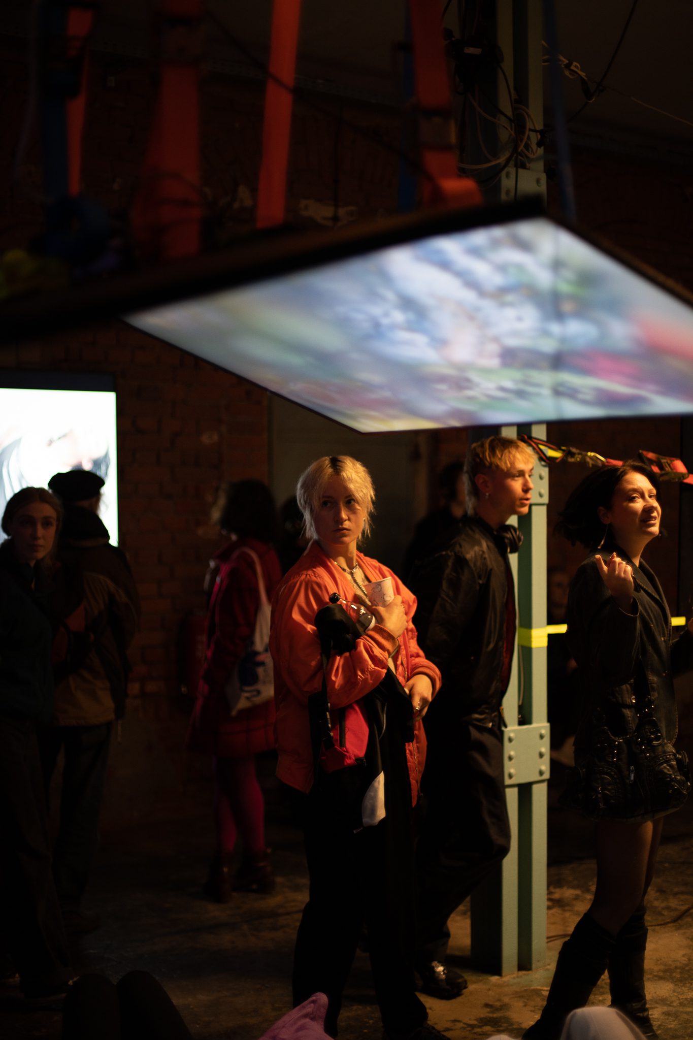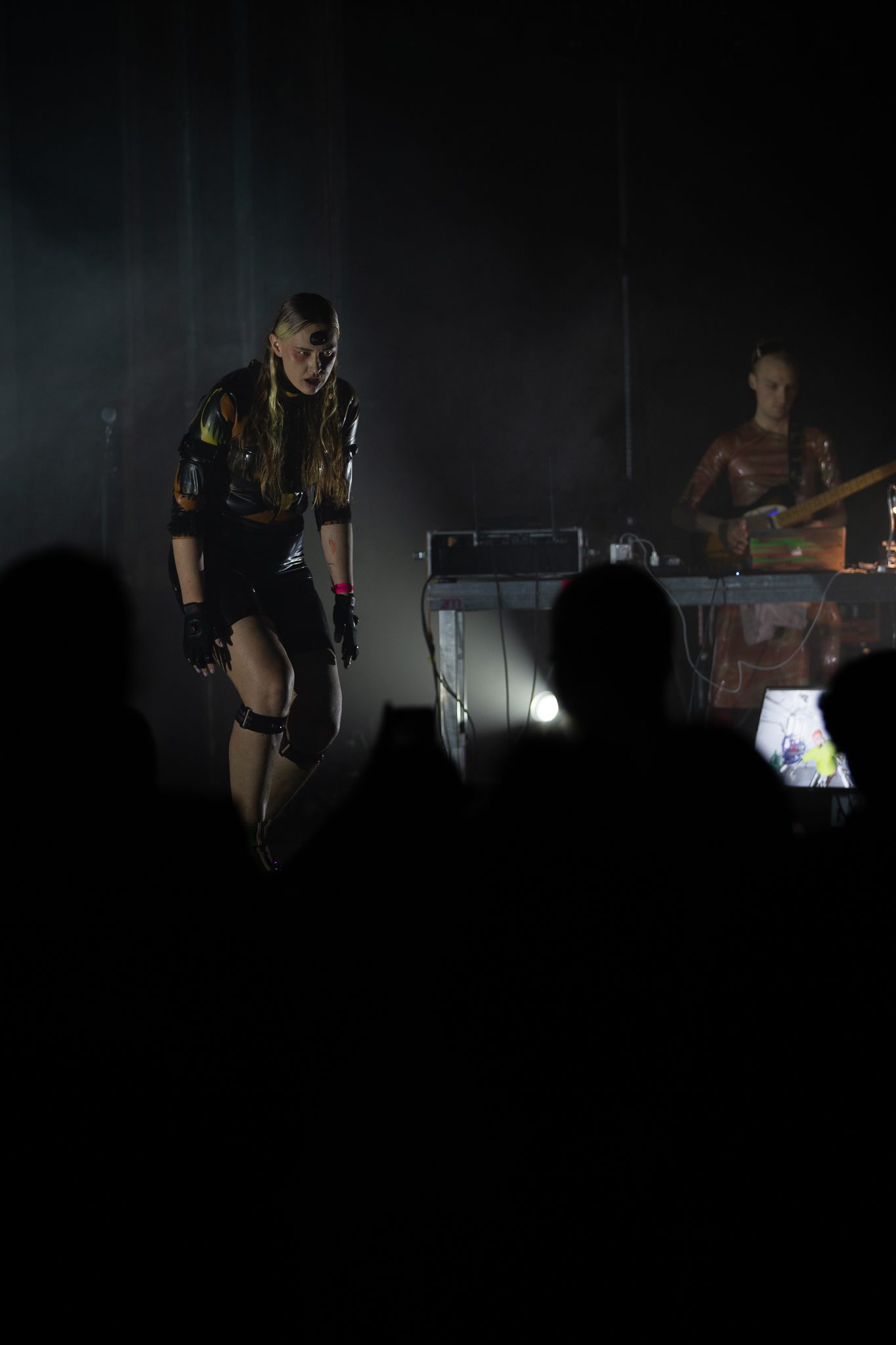 In der Konzertlocation, einem historischen Kinosaal im Süden von Leipzig, wurden Birthcore, BBB_, Nazar und Namasenda allesamt frenetisch bejubelt. Absolut herausragend war die Performance von allapopp und Alex Sahm, die ihr neues Album „Songs of Cybergeoisie“ vorstellten. allapopp schritt dabei anfangs durch die Menge im Saal, jede ihrer Bewegungen wurde live über Sensoren an ihrem Körper getrackt. Auf der Bühnenleinwand konnte das Publikum in Echtzeit die Fusion von Alla und den Figuren des Videospiels beobachten.