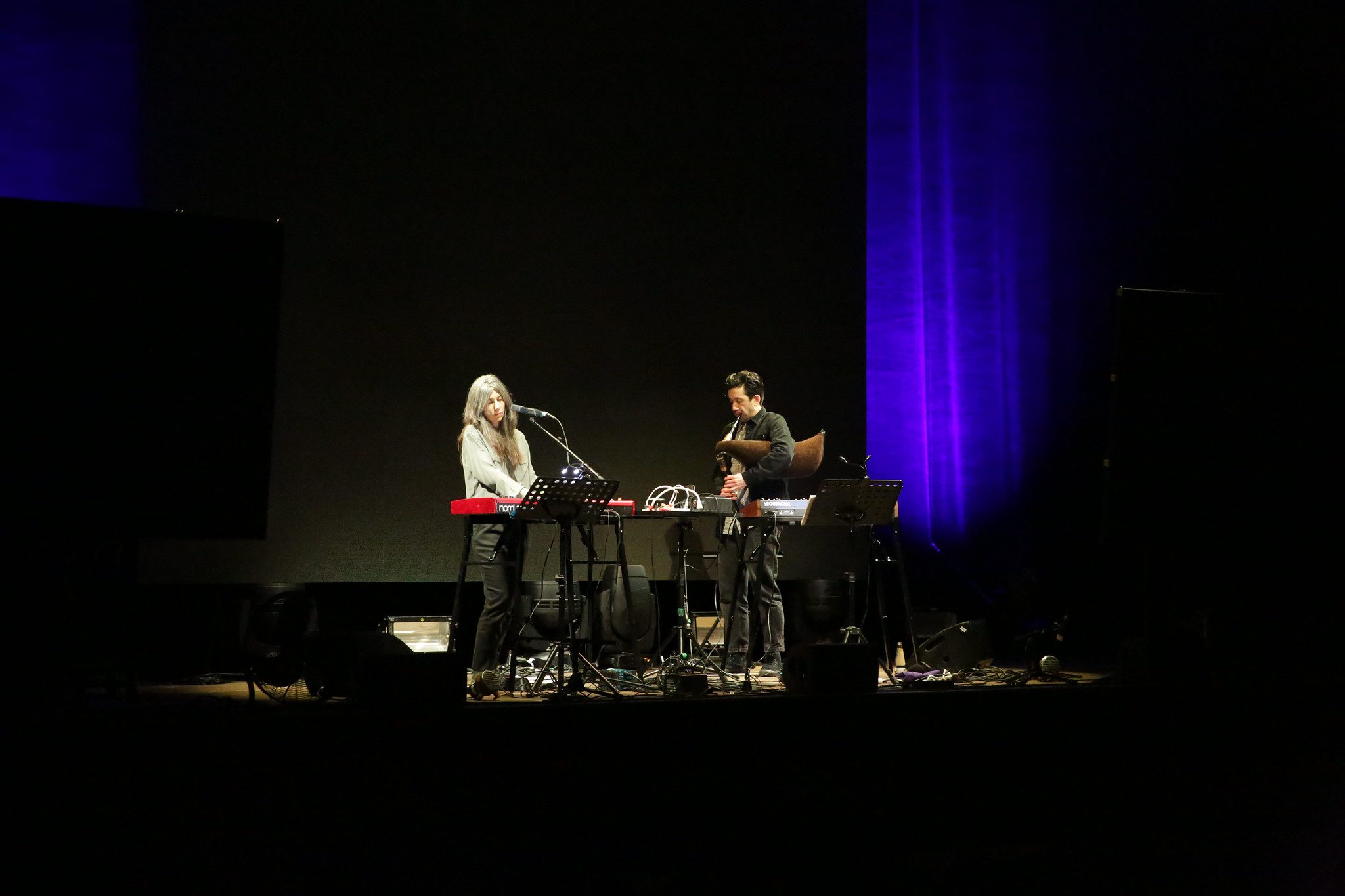 Auch wenn das eigentliche CTM-Finale erst am Abend mit Amnesia Scanner & Freeka Tet stattfand – mein persönliches Abschlusskonzert lädt schon am Nachmittag ins, wie erwartet, prall gefüllte Radialsystem. Die einen kommen frisch geduscht und rausgeputzt vom Kaffeeklatsch, die anderen nicht ganz so frisch von der Klubnacht im Berghain oder dem CTM-Gastspiel im RSO zum Sitzkonzert von Julia Holter und Tashi Wada. ‘Asleep to the World’ lautet der Titel, und auch das US-amerikanische Duo ist müde, sagt Holter gegen Ende des Sets – dem Jetlag sei Dank. Trotzdem bescheren sie dem Publikum eine fast eineinhalbstündige Session, die stellenweise eher wie eine intime Probe wirkt denn als ein Konzert.