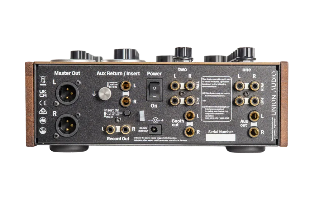 Äußerlich setzt die Signature Edition des two.valve und four.valve auf ein, Union Audio nennt es so, Kupfer. Die gesamten Schriftzüge auf dem Gehäuse wurden überarbeitet und ein bisschen verschlankt. Grundsätzlich sieht der Mixer in dieser Form etwas aufgeräumter und nochmal edler aus. Das liegt auch an den VU-Metern, die in einen eigenen Metallring eingelassen wurden und Holzpaneele an den Seiten.