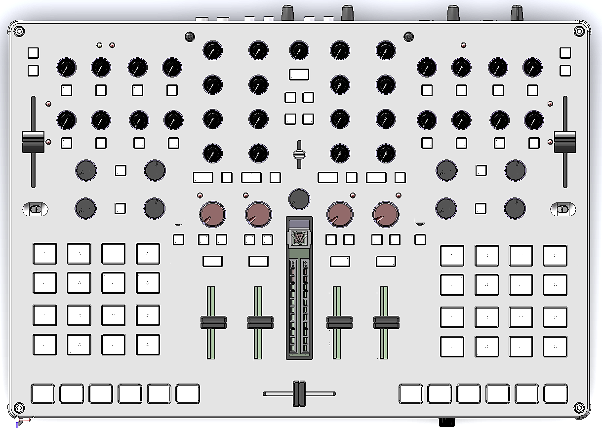 Natürlich gab es auch ein paar Vorschläge, um das bestehende Sortiment zu aktualisieren. Nachstehend ein Update der Vestax Clubmixer mit integrierter, obenliegender DVS-Schleife und MIDI-Buttons. Da ich auf Gigs oft gesehen habe, dass DJs im Team auflegen, kam mir in den Sinn, einen zweiten Vorhör-Kanal zu integrieren.