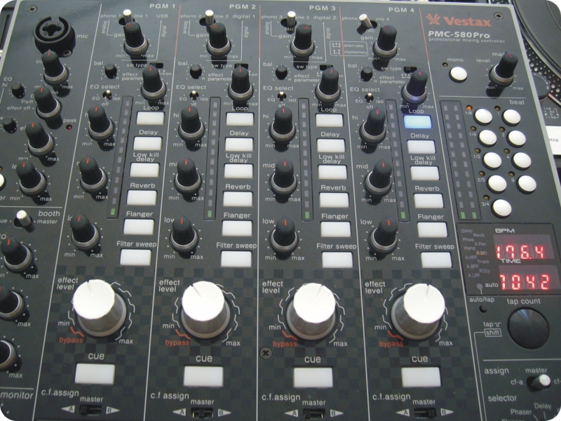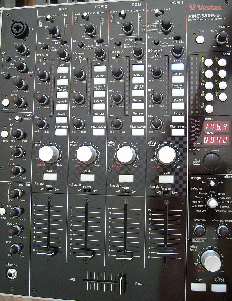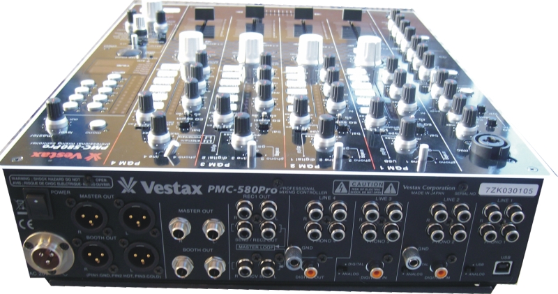 VESTAXs PMC580 Pro wird als „24bit full digital mixer“ der nächsten Generation angepriesen. Die Zukunft ist also digital, was nicht wirklich eine neue Nachricht ist. Damit werden die Möglichkeiten endlos, mit denen man einen Mixer ausstatten kann: verschiedene Faderverläufe, unterschiedliche EQ Typen, endlose Effektsektionen. Und natürlich digitale Ein- und Ausgänge. VESTAX hat sich hierbei vor allem auf die Effekte konzentriert.