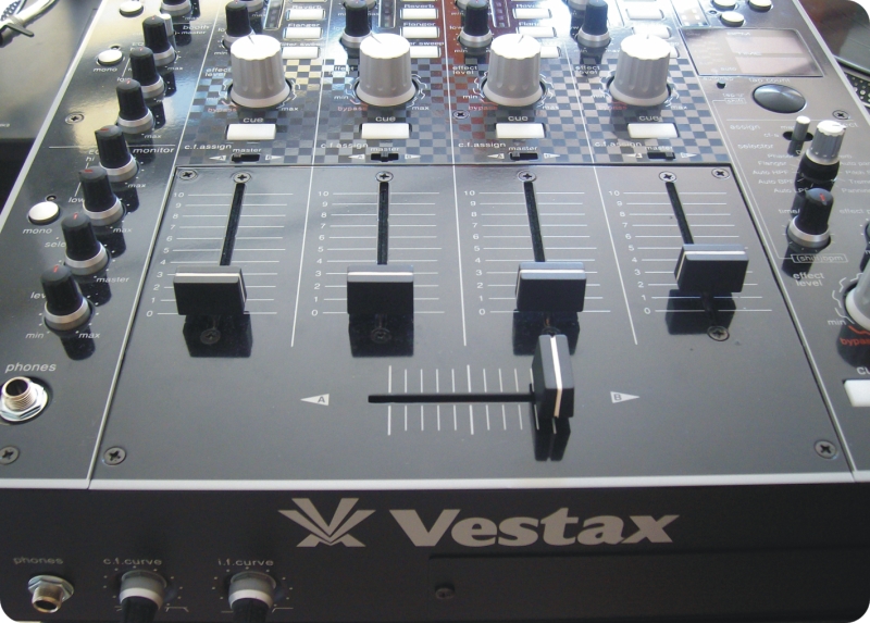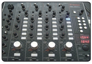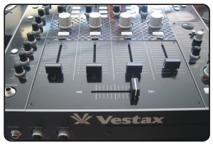 Die Basis wird durch vier Kanäle mit 60mm Linefadern, sowie einen Crossfader gebildet. Alle Fader sind, wie bei VESTAX nicht anders zu erwarten, hochwertig. Die Faderkurven können, sowohl für den Crossfader, als auch für die Linefader, über frontseitig angebrachte Regler eingestellt werden. Jeder der vier Hauptkanalzüge ist klassisch aufgebaut: Input-Selector, Gain, Cue-Button, Crossfaderzuweisung und 3-Band EQ. Der Kanal EQ kann zwischen klassischem Equalizer (+/- 12db), OFF und Isolator (+10db~Cut) umgeschalten werden. Andere digitale Mixer warten hier mit verschiedenen wählbaren EQ-Typen auf, der PMC gleicht dieses vermeintliche Defizit durch kanalbezogene Effekte aus.