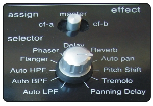 Die rechte Seite gehört den Effekten. Zusätzlich zu den Kanaleffekten können diese Effekte auf das Mastersignal oder auf ein der Seiten des Crossfaders angewandt werden. Zur Verfügung stehen hier "Filter" (LPF, BPF, HPF), "Flanger", "Phaser", "Delay", "Reverb", "Auto Pan", "Pitch Shift", "Tremolo" und "Panning Delay". Damit der Effekt zum Tempo des Signals passt, kann man entweder den BPM-Wert per TAP-Button ermitteln oder auf den Auto-BPM Counter vertrauen.