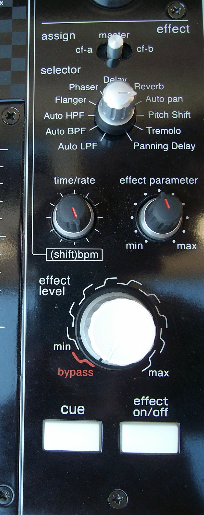Jeder Kanal verfügt über sechs Buttons zur Anwahl dieser Effekte und über zwei Drehregler, um deren Parameter und Level zu steuern. Bei der Arbeitsweise des (Kanal-) Effektweges hat man die Option zwischen einem Alternate Mode (der Effekt ist aktiv solange der Button gedrückt gehalten wird) und einem Momentary Mode (der Effekt wird durch drücken des Buttons ein- und ausgeschalten). Jeder Kanal verfügt über die (teilweisen BPM-synchronen) Effekte „Filter Sweep“, „Flanger“, „Reverb“, „Low Kill Delay“, „Delay“ und „Loop“, was nicht wirklich ein Effekt ist. (Dazu später mehr). Klang und Steuerung der Effekte sind dem Einsatzzweck angemessen. Hier gibt es nicht viel zu bemängeln. Ungewöhnlich, aber wohl auch VESTAX-typisch, ist die Balancereglung an jedem Kanal.