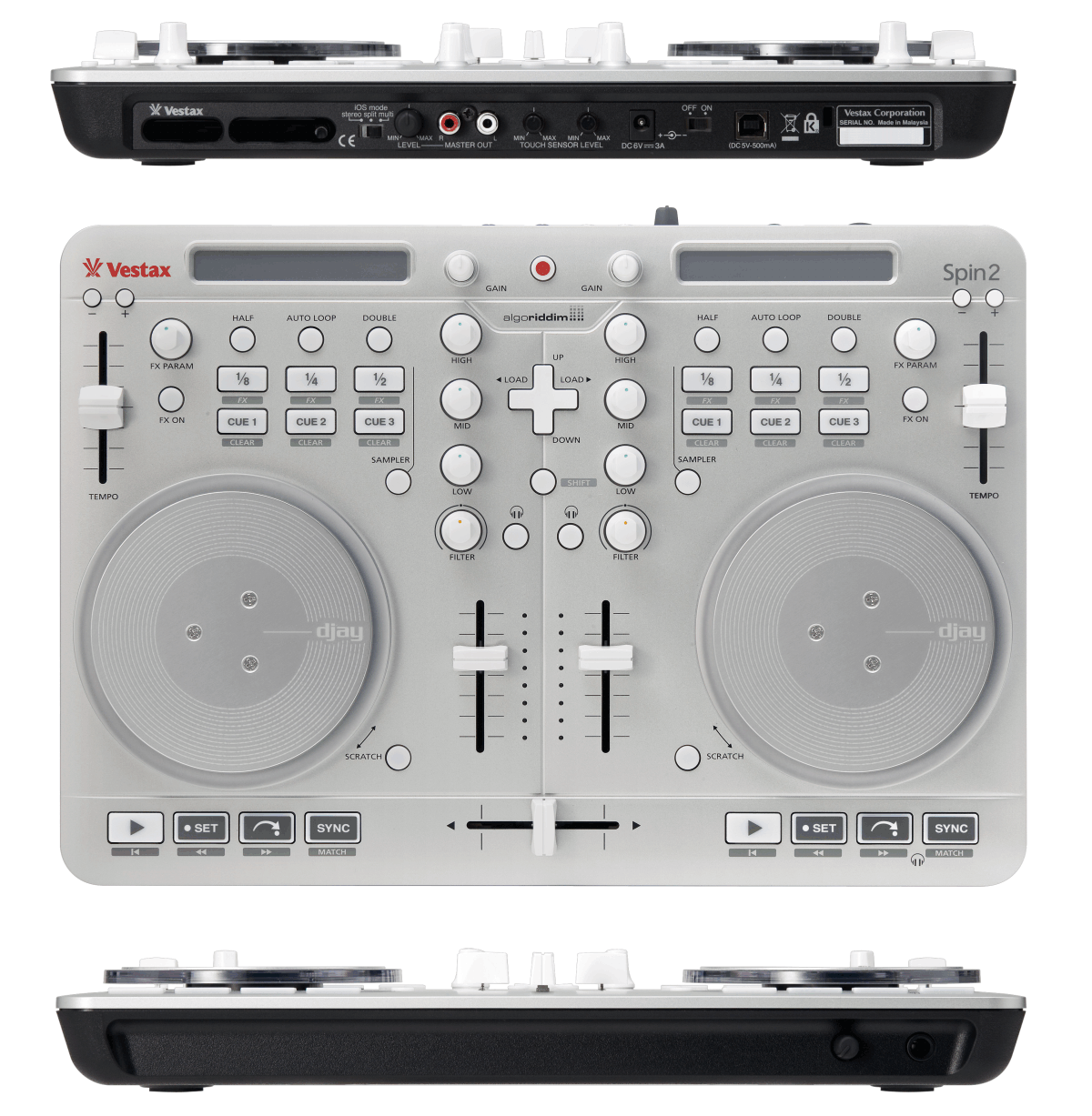 Der MAC-klusive Silberling aus dem Hause Vestax bekommt einen Nachfolger, der kompatibel mit iOS und MAC OS ist.Neben dem USB-Anschluß gibt es nun also auch einen 30-PIN Adapter für iOS Geräte ab Version 6, mit dem einerseits Multichannel-Audio und andererseits auch Lade- & Betriebsstrom übertragen werden. Die Schieberegler-EQs wurden durch Drehregler samt neuer Filtereinheit ersetzt und neu sind ebenfalls Touchstripes für die Needlesearch Funktion in DJAY.