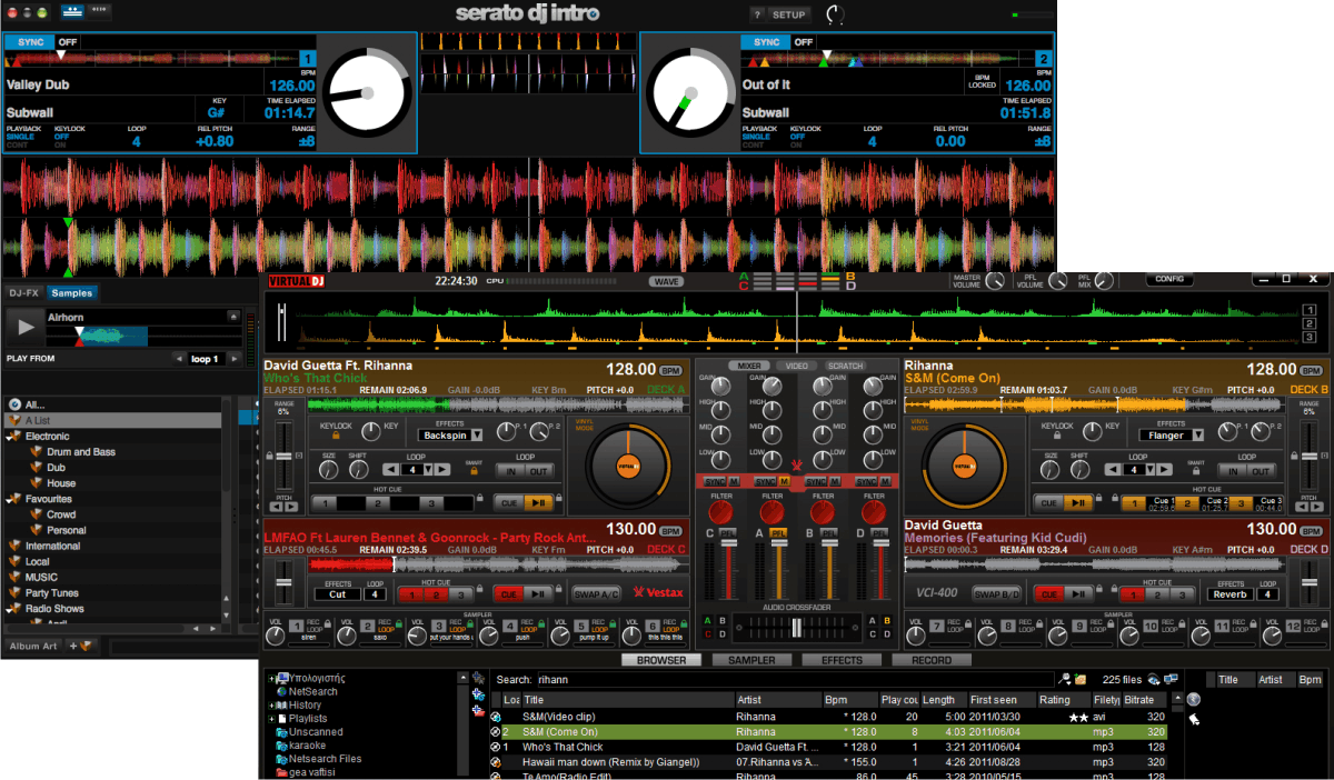 Auch wenn im Lieferumfang "nur" Virtual DJ LE und Serato DJ Intro sind, das Layout zwinkert schon sehr in Richtung Traktor 2.