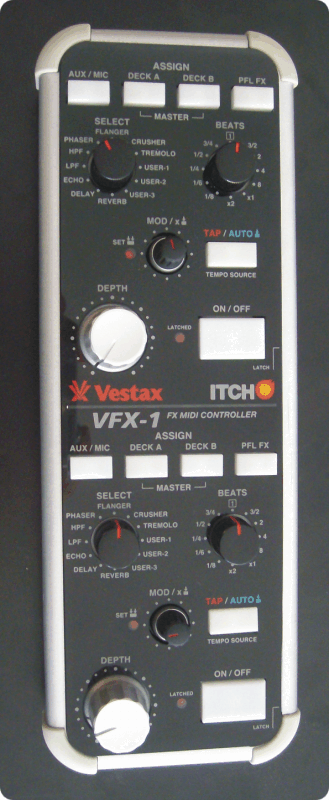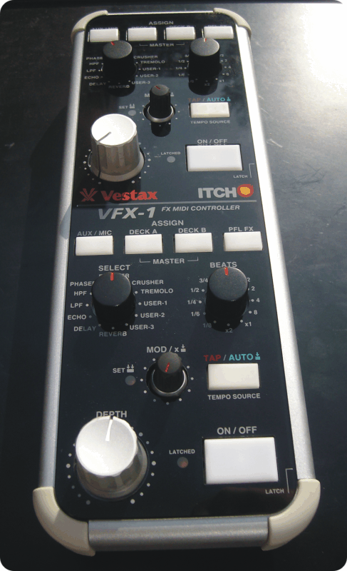 Als erstes fällt auf, dass das Teil ziemlich groß ist. Was nicht wundert, ist es doch in erster Linie als Ergänzung zum VCI300 gedacht. Folglich orientiert sich VESTAX auch an dessen Abmaßen. Die zugehörige Software, SERATO ITCH, wird demnächst mit Effekten versehen und, wie man hört, soll SSL später dem Beispiel folgen. Effekte in der SERATO-Software (SSL, Itch) förderen sicherlich nicht nur den VFX-Abverkauf, sondern merzen auch einen signifikanten Unterschied zu Traktor aus.