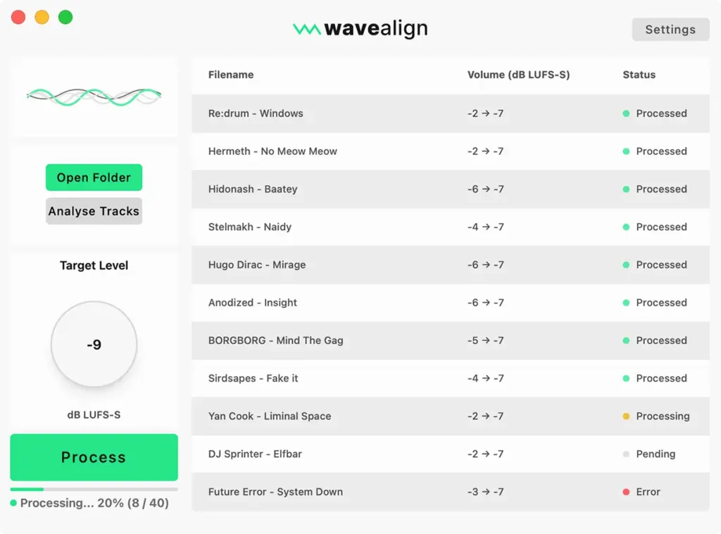 Dass Tracks alle unterschiedlich laut gemastert sind, ist für DJs nach wie vor der Alltag. waveAlign will mit ihrem Analyse-Tool dafür sorgen, dass man nicht mehr ständig zum Gain-Regler greifen muss.