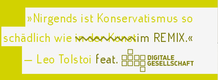 Mit der Initiative "Recht auf Remix" fordert die Digitale Gesellschaft nicht etwa die Entmündigung der Urheber, sondern einfach zu erhaltende Lizenzen zur Werknutzung. Derzeitige gesetzliche Beschränkungen erschweren die Kreativität und drängen den Remix ins Illegale. Im US-Copyright existiert bereits eine Fair Use Reglung, wenn es nach der Digitalen Gesellschaft geht, soll ein Pendant auch im EU-Recht verankert werden. Eine Forderung, die nach dem Besuch im REMIX MUSEUM absolut nachvollziehbar ist.