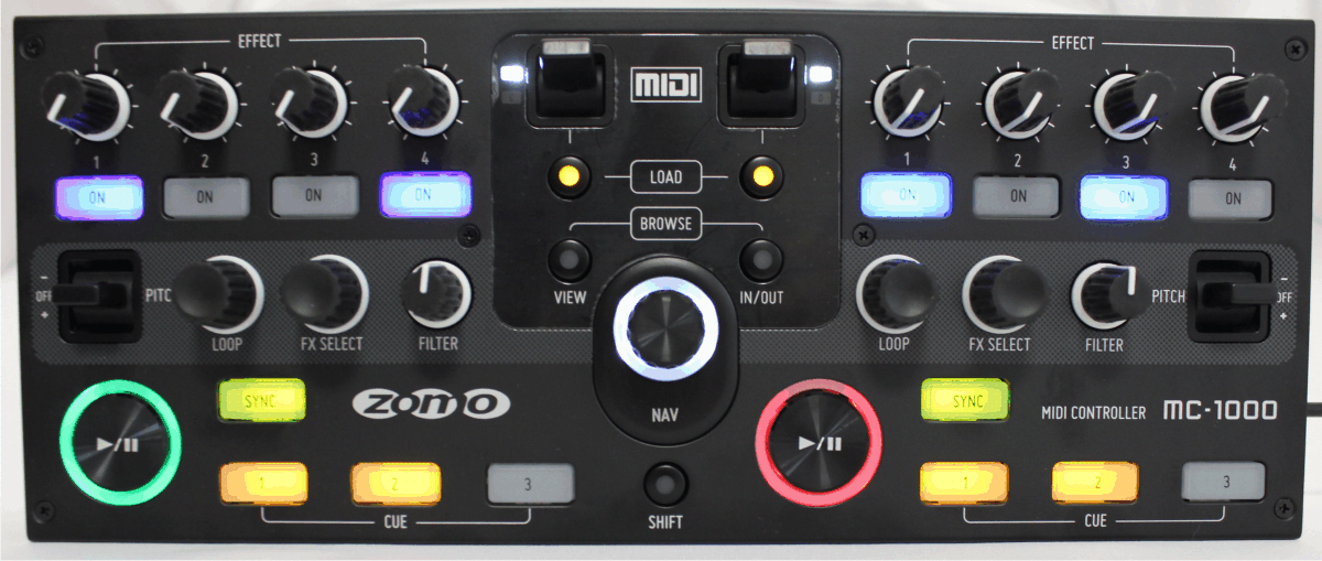 Irgendwie werden wir mit dem MC-1000 nicht so ganz warm. Der Grundgedanke ist eigentlich ein Guter: ein DJ-Controller im schlanken Design mit eingebauter 8-fach Soundkarte. Allerdings hat sich ZOMO mit dem Layout der Bedienelemente selbst ein Bein gestellt, denn wahres DJ-Feeling mag hier irgendwie nicht aufkommen. Und damit seien jetzt nicht die fehlenden Jogwheels oder Pitchfader gemeint und auch nicht das Benutzen des Sync-Buttons, sondern vielmehr daß der MC-1000 nicht sehr viel mehr ist als die Bedieneinheit einer Jukebox: also Lied raussuchen, starten, nächstes Lied suchen, starten, überblenden, fertig. Wenn man den Grundgedanken einmal weiterführt und sich vorstellt, es gäbe zwei verschiedene Modelle (eins mit und eins ohne Audio-Interface), deren Bedienelemente ein wenig neutraler angeordnet und beschriftet wären, könnte der MC-1000 einen idealen Zusatzcontroller für den DVS-User darstellen. Eben so, wie es bspw. der HC-1000S für Serato User tut.