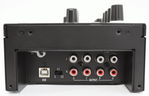 Die Wandlung des Audiosignals findet bei 16 bit und wahlweise 44,1 oder 48 kHz statt und liefert einen absolut durchschnittlichen Klang, also weder besonders schlecht noch überragend gut, sondern eben vergleichbar mit der breiten Masse verfügbarer Interfaces für den DJ-Bereich. Wie schon erwähnt stehen im Betrieb insgesamt 4 Stereopaare zur Verfügung, die dann an den Mixer weitergegeben werden können. Alle Anschlüsse sind in Cinch-Bauweise gefertigt, ein Kopfhöreranschluß ist nicht vorhanden. Dies sei auch nur der Vollständigkeit halber erwähnt, da der MC-1000 primär sowieso auf externes Mixing ausgelegt ist.